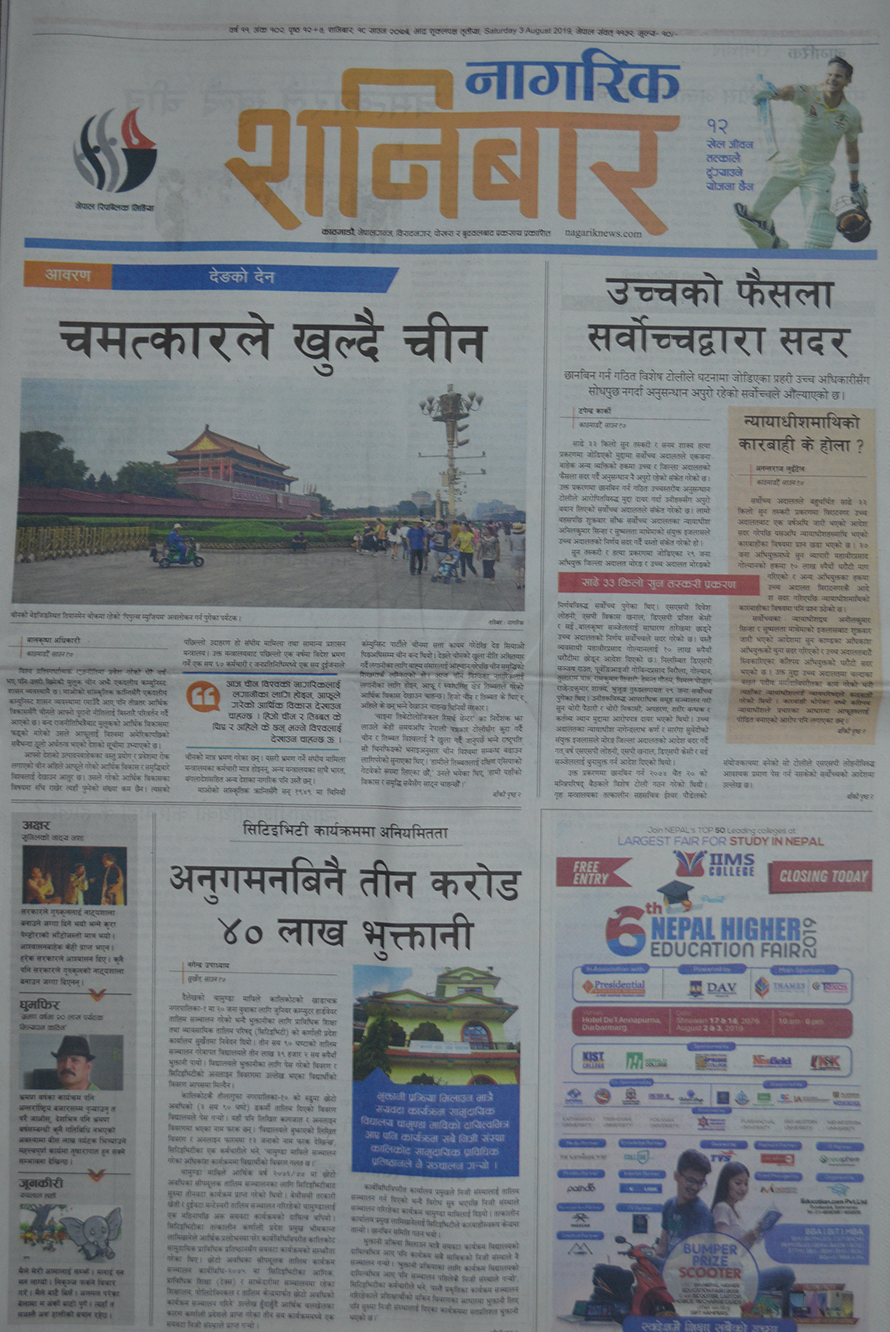नागरिकमा चीनको समृद्धि कथासँगै सीटीईभीटी अनियमिततालगायतका विषय समेटिएका छन् ।