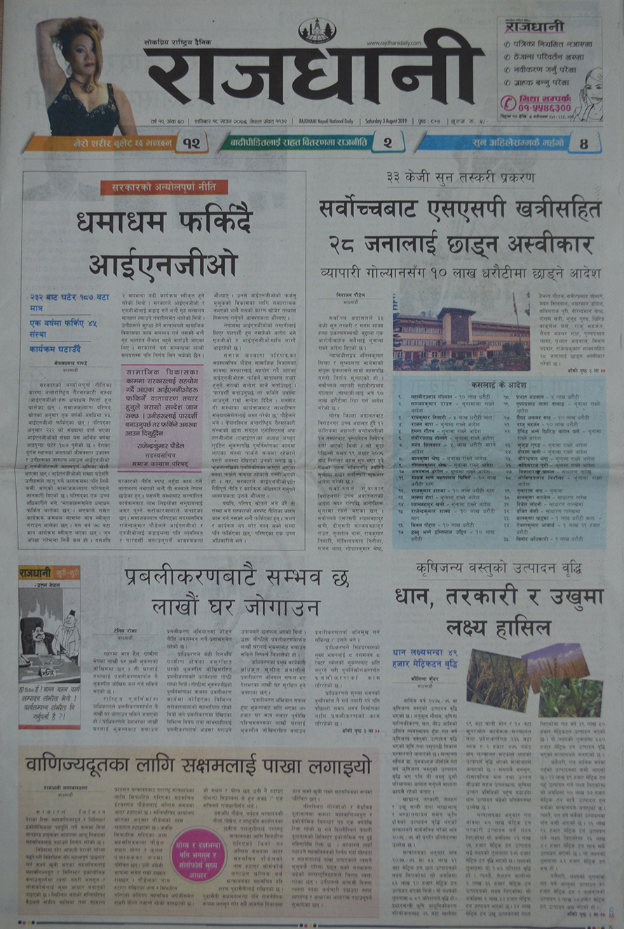 सरकारको अन्योलपूर्ण नीतिका कारण गैरसरकारी संस्थाहरू धमाधम फर्कन थालेको खबर राजधानीमा छ भने सरकारी मुखपत्र गोरखापत्रले ६४ अर्ब लगानीमा औद्योगिक पार्क बन्ने लेखेको छ ।