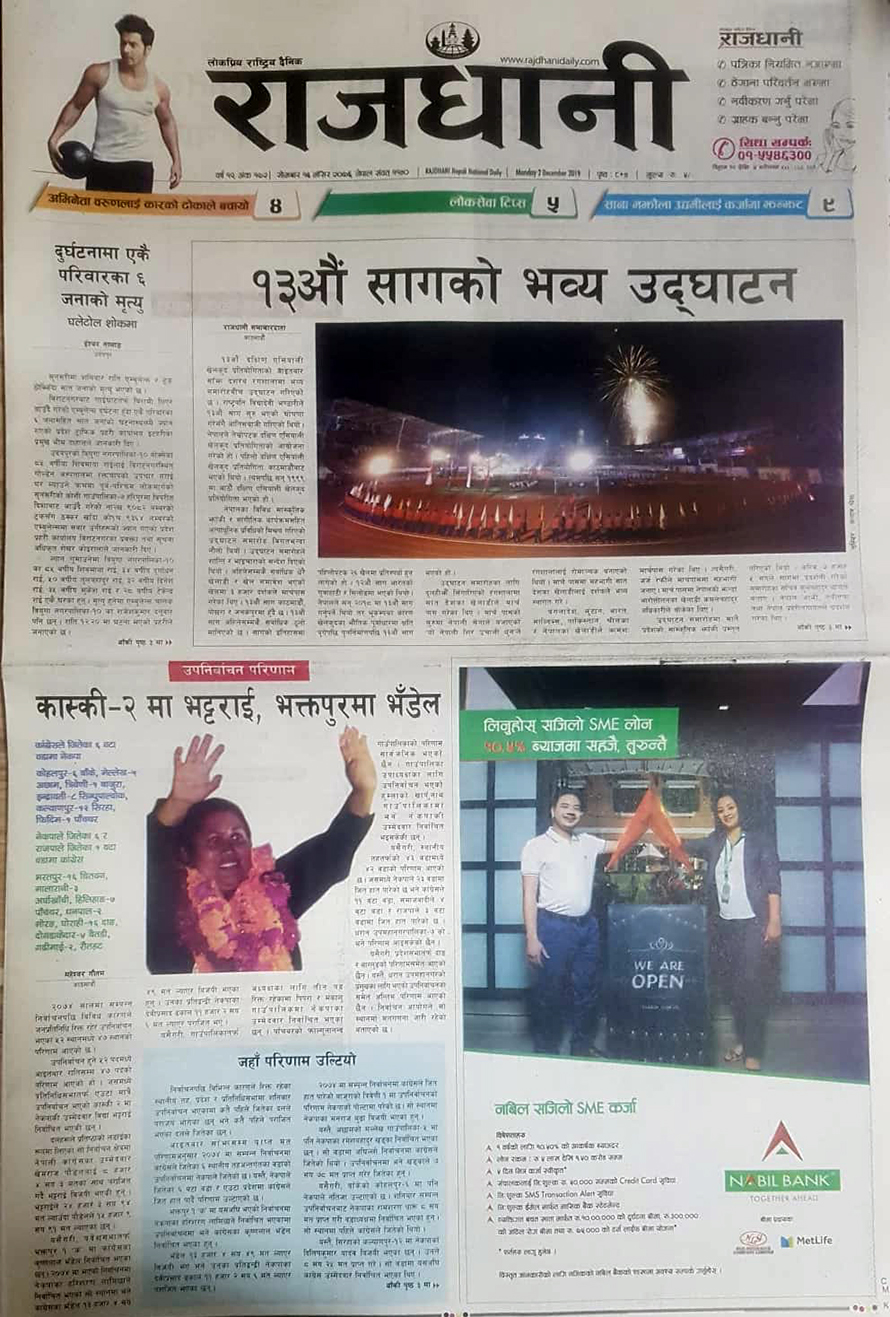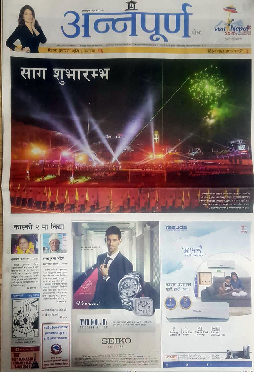 अन्नपूर्णले ‘साग शुभारम्भ’ शीर्षक दिएर मुखपृष्ठमा सागबारे कभरेज गरेको छ । त्यस्तै, उपनिर्वाचनको मत परिणामलाई अन्नपूर्णले कभरेज गरेको छ ।