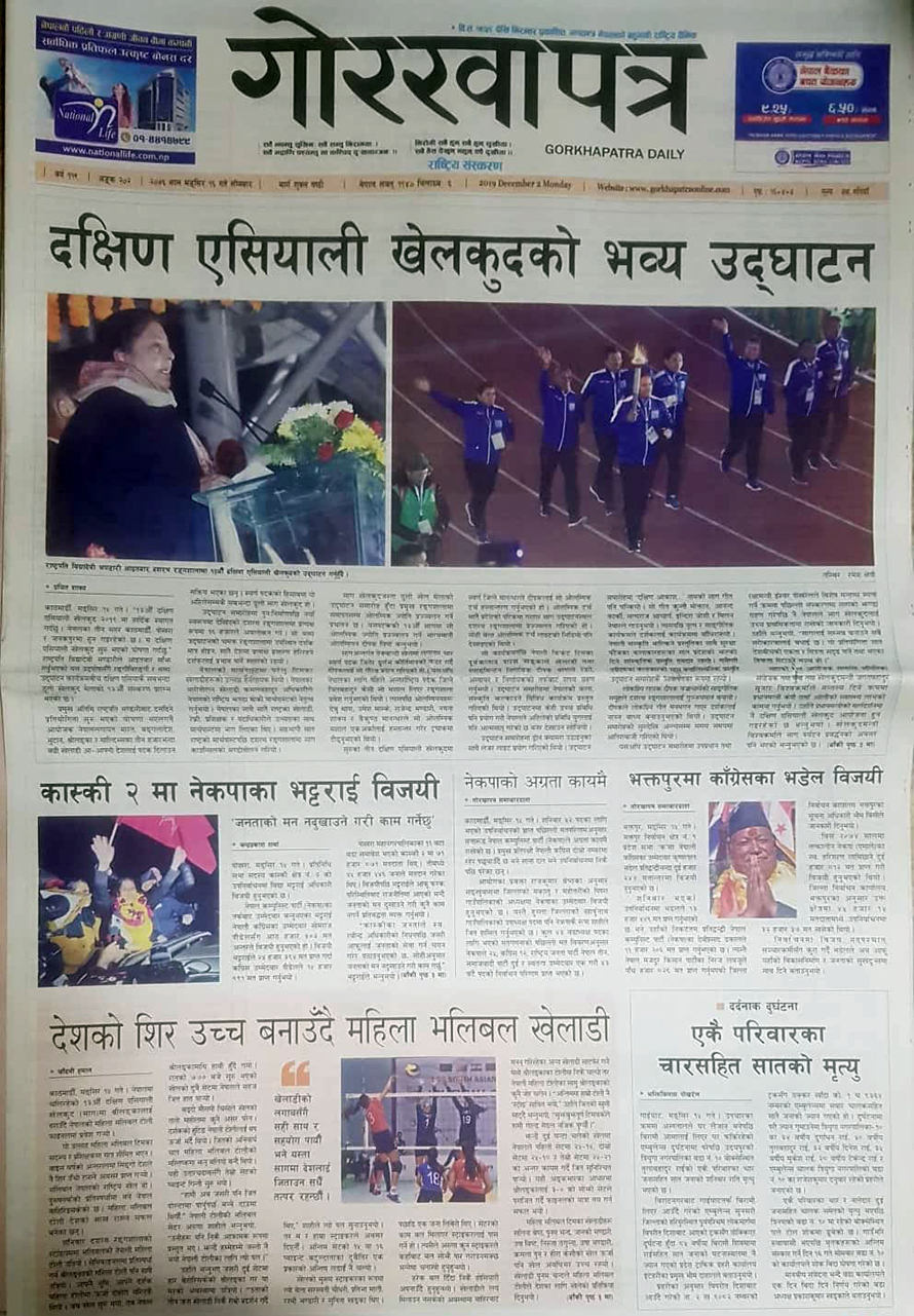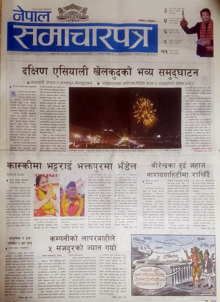 १६ मंसिर, काठमाडौं । उपनिर्वाचन र दक्षिण एसियाली खेलकुद (साग) प्रतियोगिता उद्घाटन आजका सबै दैनिक पत्रिकाहरूको प्राथमिकतामा परेको छ ।