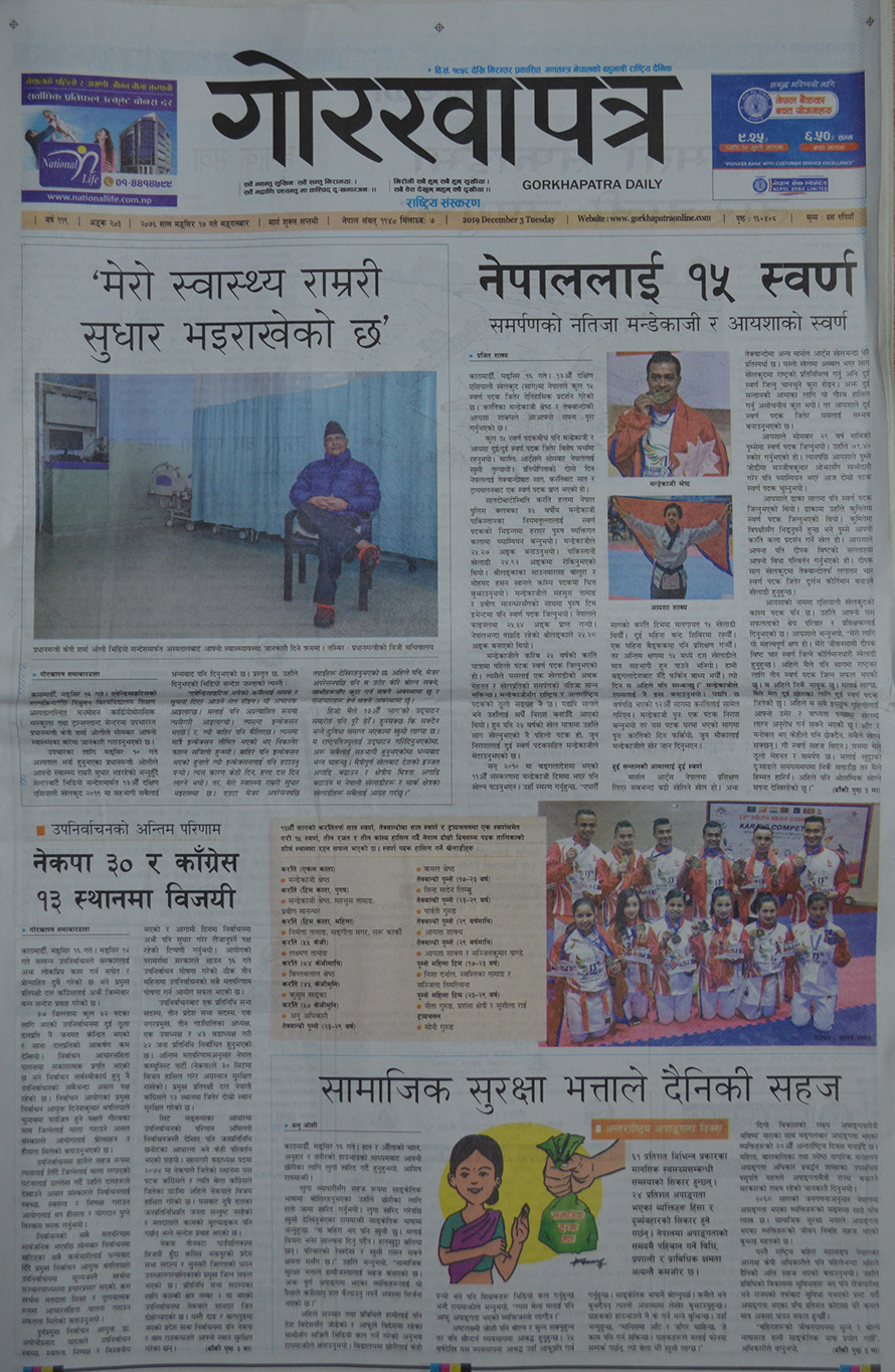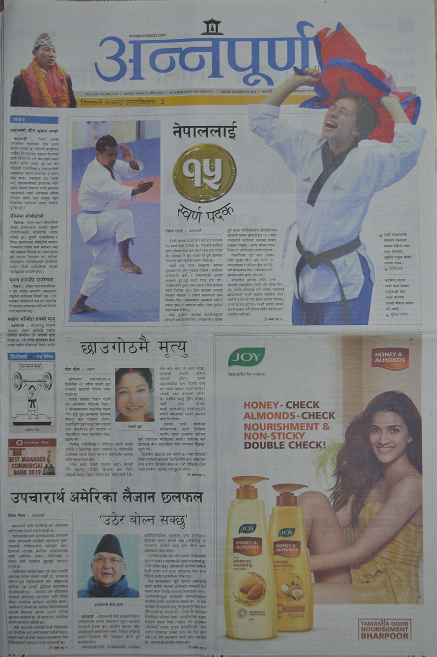 अन्नपूर्णले ‘नेपाललाई १५ स्वर्ण पदक’ शीर्षक दिएर सागमा नेपालले जितेको पदकबारे समाचार बनाएको छ । नेपालले कराँतेमा ७, तेक्वान्दोमा सात र ट्रायथलनमा अर्को स्वर्ण जित्दै १५ स्वर्ण हासिल गरेको हो ।