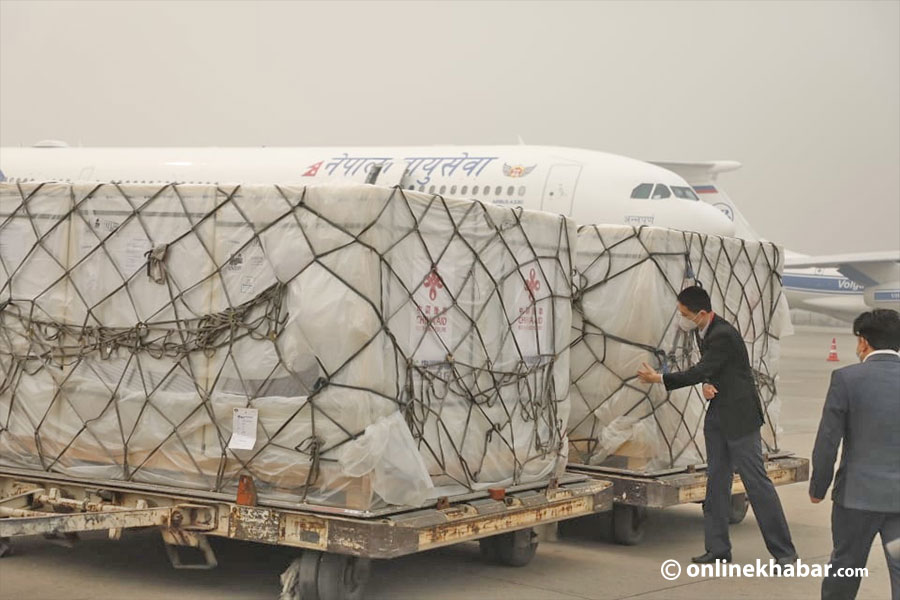 राष्ट्रिय ध्वजावाहक नेपाल वायुसेवा निगम (नेपाल एयरलाइन्स) को वाइडबडी ३३० जहाजबाट कोरोनाविरुद्धको खोप काठमाडौं ल्याइएको हो ।