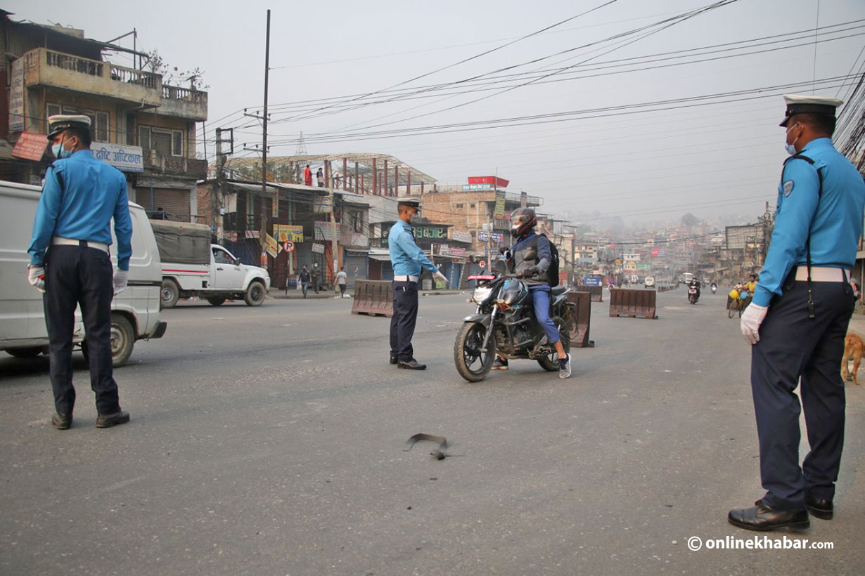 काठमाडौं उपत्यकाका प्रमुख नाका र भित्री सडकहरुमा चेकजाँचका लागि ट्राफिक प्रहरीहरु पनि खटिएका छन् । नागढुंगा क्षेत्रमा ट्राफिक प्रहरी महाशाखा प्रमुख एसएसपी जनक भट्टराई आफैं खटिएका छन् ।