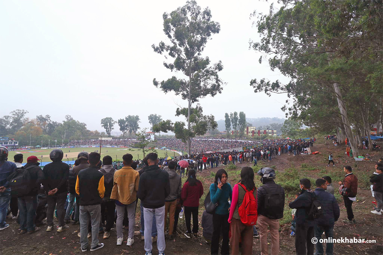 खेल सुरु भएसँगै बिहानैदेखि टीयू मैदानमा क्रिकेटप्रति क्रेज देखिएको छ । मौसम अनिश्चित भएपनि नेपाली दर्शकको उल्लेख्य उपस्थिति रहेको छ । पानीको परवाह नगरी उनीहरूले खेल हेरिरहेका छन् ।